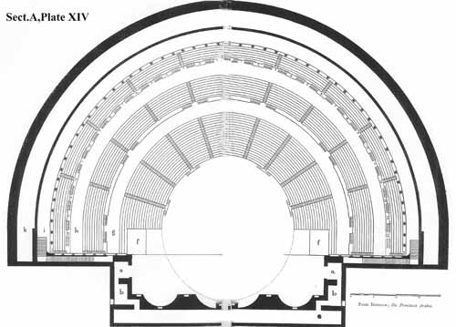 جدرانها الداخلية وأن واجهةالمسرح كانت مكسوة بألواح رخامية تغطي
